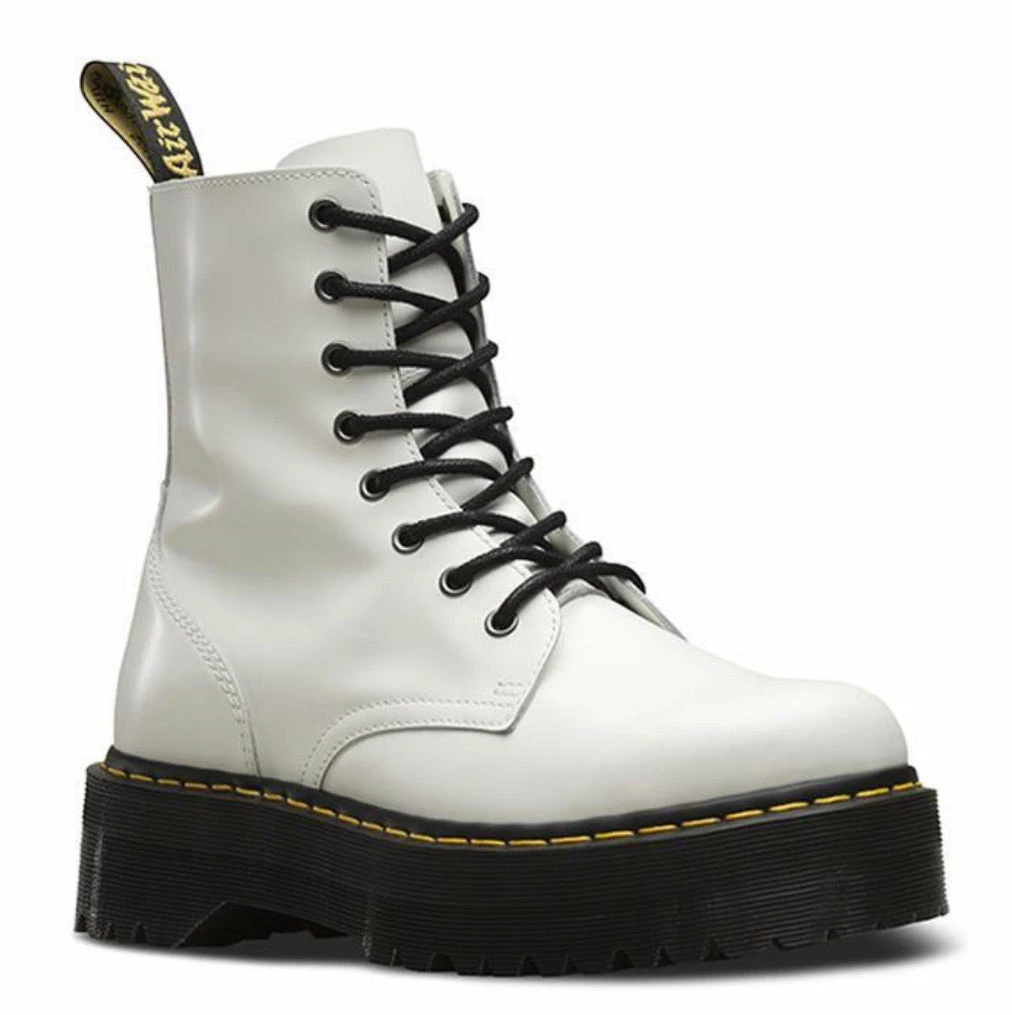 Dr. Martens Boots Dr. Martens Jadon White Smooth Zip Platform Ankle 8 Eyelet Boot
